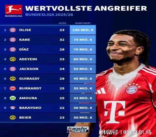 (德甲进攻球员中身价排第7)